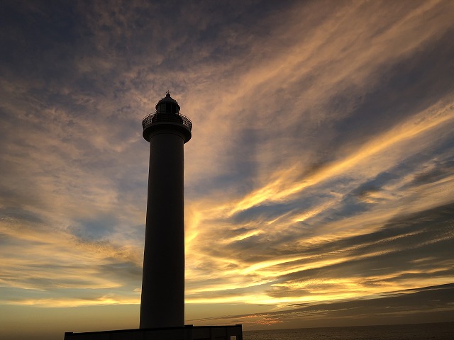 灯台越しの夕焼け、ダイナミックで綺麗でした!